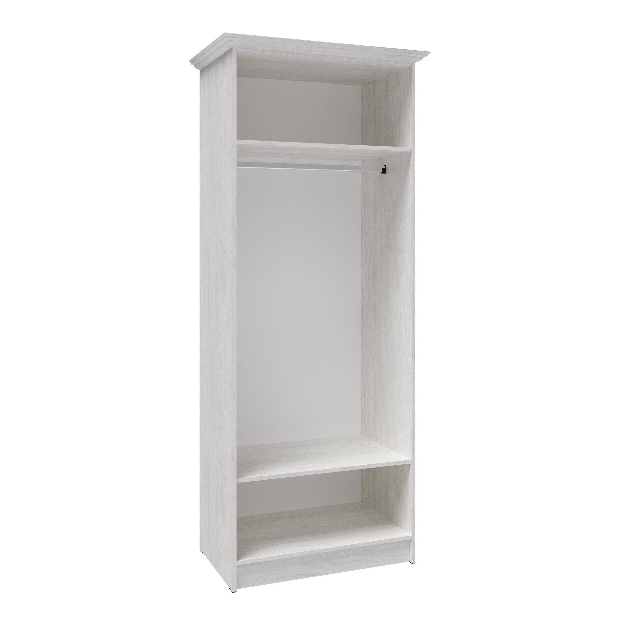 Модуль можно дополнить карнизом, карниз продается отдельно. Петли без доводчика «BRILON» Опоры-подпятник пластиковые, цвет Черный, ручки металлические кнопка, цвет Черный Штанга стационарная металлическая