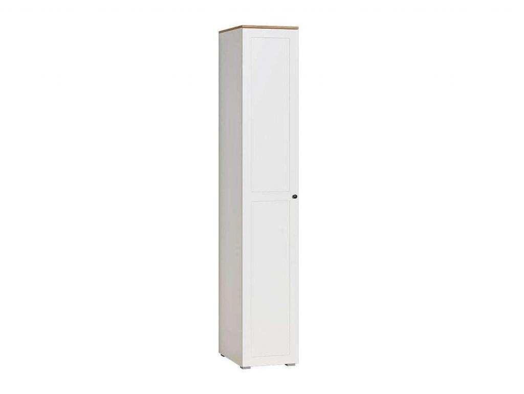 Остин Шкаф-пенал 13.225 Белый шагрень/Дуб Вотан подходит для хранения одежды в современном интерьере любой комнаты.