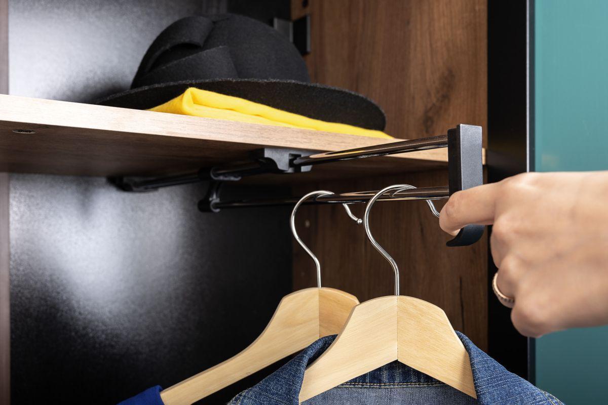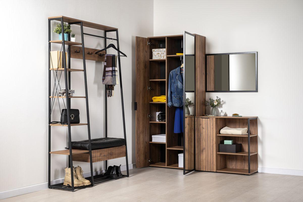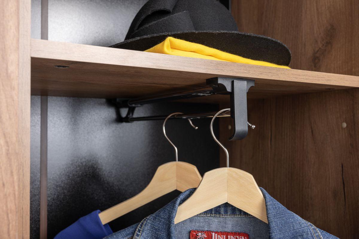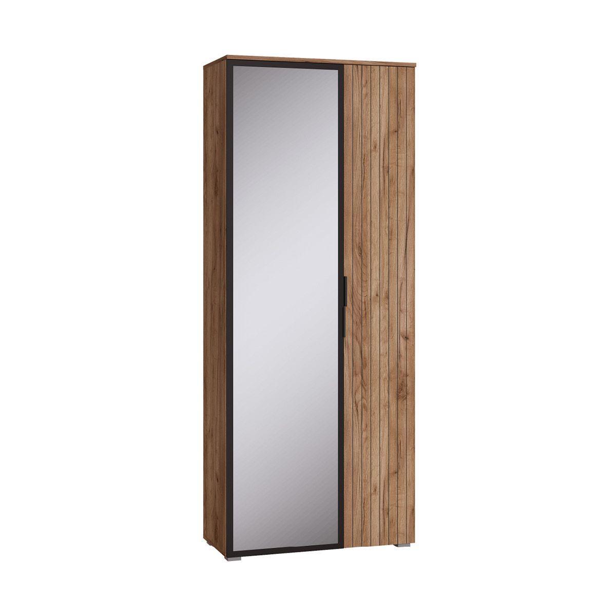 Двухдверный шкаф для одежды из серии Гранд можно использовать в любом помещении. Наполнение шкафа комбинированное: секция с полками и секция с выдвижной штангой и антресольной и нижней полкой. Зеркало во всю дверь позволит увидеть себя во весь рост.
